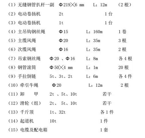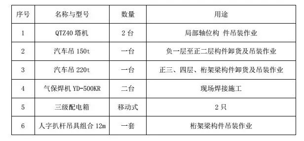 本次吊裝施工施工主要機(jī)具見下表: