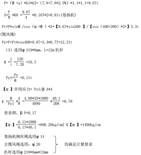 扒桿的上端掛一起重量為 10t的四門滑輪組,主吊鉤鋼絲繩由 2t電動(dòng)卷?yè)P(yáng)機(jī)經(jīng)扒桿上端四門滑輪組與吊鉤的四門滑輪組穿繞并固定。